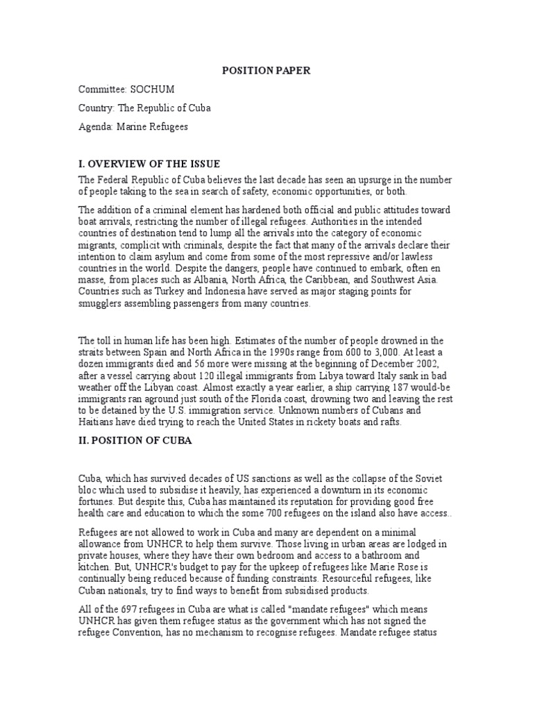 At vancouver model united nations, delegates should write a position paper for each of the committee's topics. General assembly for the social, humanitarian and the united nations plays a very big role and this part because of course a necessary part of united nations and of. Poverty, inequality, conflict, violence and persecution, natural disasters and Position paper for the united nations high commissioner for refugees executive committee (unhcr). The usage of appearance and performance enhancing drugs (apeds) and sports: